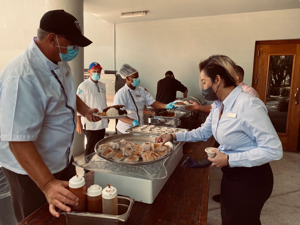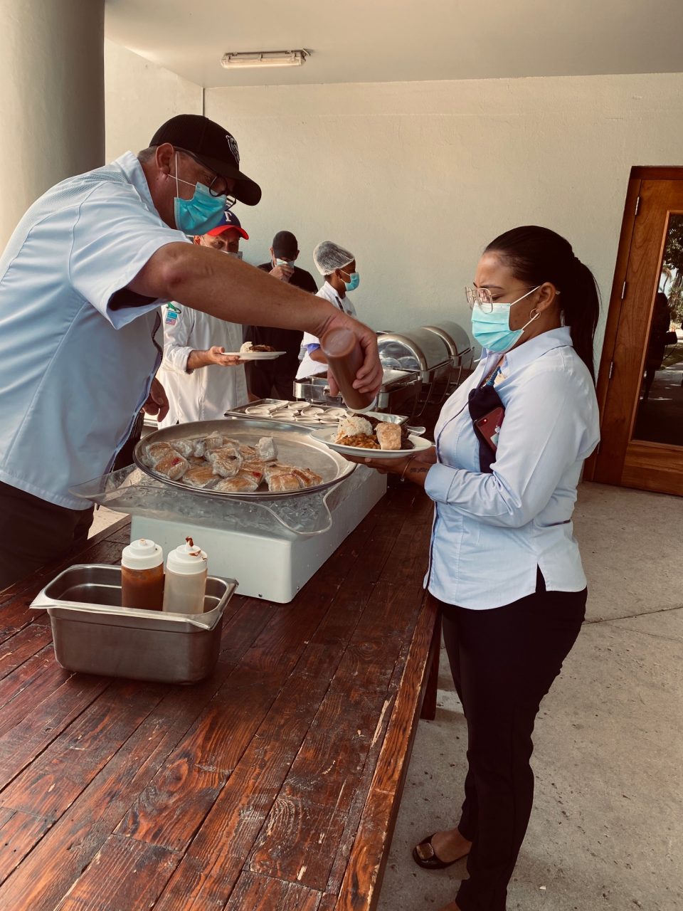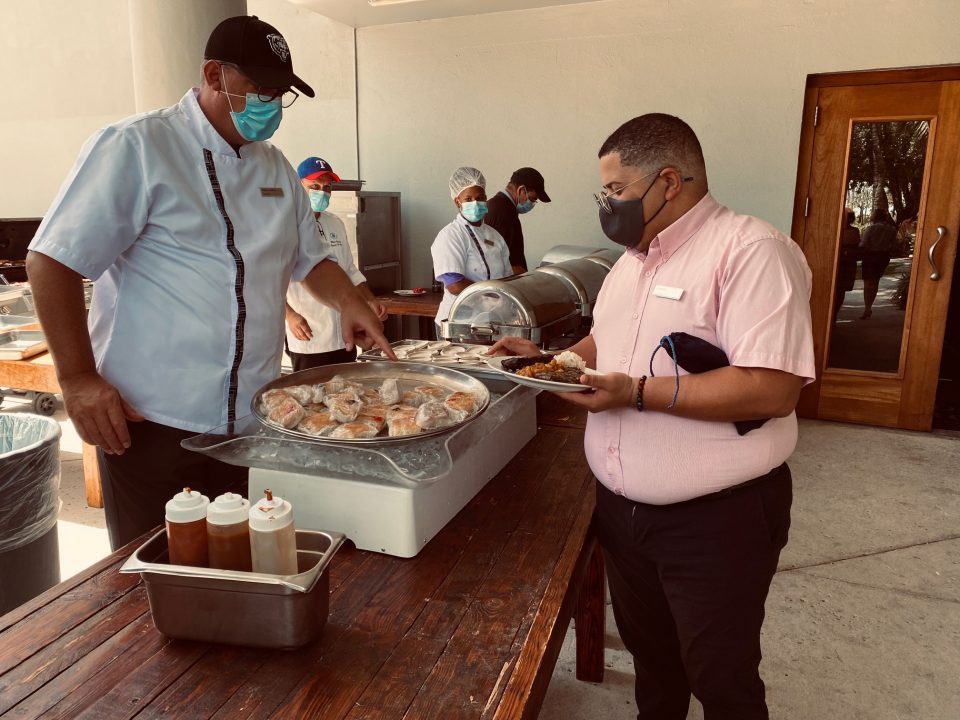 Miembronan di e team a disfruta di nan Lunch na Morris Lapidus Grand Ballroom, cu reglanan di distanciamento social aplica, anto a expresa un satisfacion enorme den cuadro cu e habrimento bek di e resort, cu ahustacion na standard di servicio y protocol nobo, haciendo esfuersonan grandi pa premia nos bishitantenan pa nan fidelidad na Aruba, aplicando nan mes na 120% di satisfaccion di bishitante y servicio top-notch.