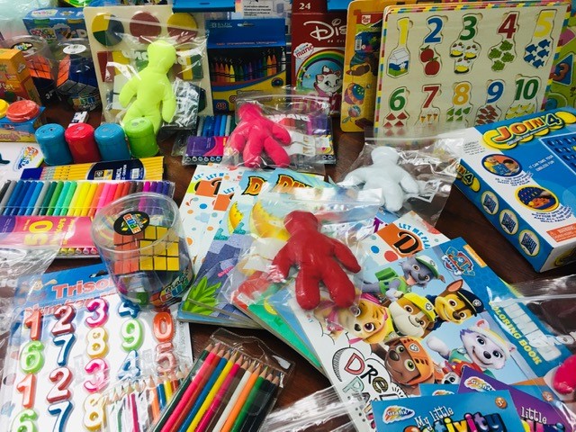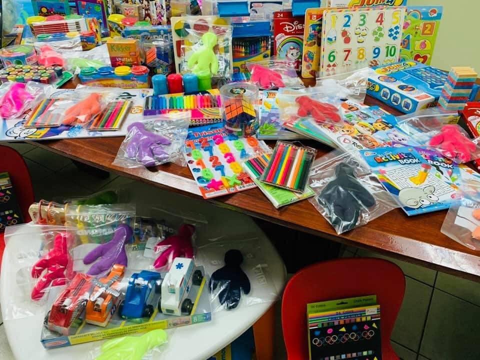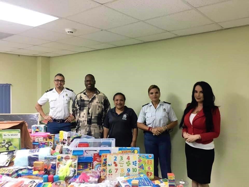 Ademas di entregamento di e ‘trauma dolls’, Kiwanis Club of Aruba ta sumamente contento di por a haci un contribucion directo na Cuerpo Policial Aruba su “Kids Corner”. E donacion ta consisti di entre otro: mesa y stoel pa mucha, puzzel, diferente weganan di mesa pa mucha di diferente edad, diferenta articulo pa pinta y skirbi y hopi mas. Ademas Kiwanis Club of Aruba tambe a entrega su “signature project Kamishibai theatre” y e 4 storianan di mucha cu e club a produci. Kamishibai ta un arte di contamento di storia pa mucha cu ta hopi interactivo.